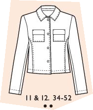 Veste avec découpes princesse devant et dos, poches à rabat plaquées devant, empiècements dos. Col avec pied de col et manches en 2 pièces. Boutonnage avec pressions devant