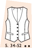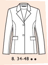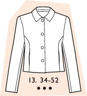 Veste avec découpes princesse devant et dos, poches dans la couture des empiècements devant, empiècements dos. Col avec pied de col et manches en 2 pièces. Boutonnage avec boutons devant.