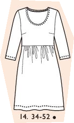 Robe courte manches 3/4 avec encolure ronde, pinces poitrine et jupe froncée.