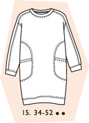 Robe courte en sweat avec manches longues, emmanchures descendues, bande contrastante sur les épaules descendant le long des manches. Empiècements devant incluant les poches.