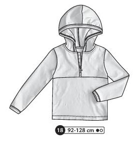 Sweat à capuche, resserrée sur le haut. Bord côte à la ceinture et aux poignets. Poche kangourou devant. Option manches droites ou froncées au niveau des poignets