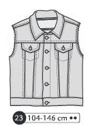 Veste en jeans sans manche. Empiècement devant et dos, poches invisibles à rabat devant et boutonnage devant? emmanchure à crues