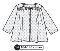 Blouse manches longues, empiècement dos, fronces aux épaules et encolure devant. Pince aux coudes