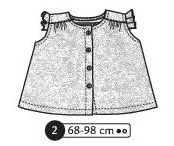 Blouse sans manche, volants aux emmanchures, empiècement dos et fronces aux épaules devant et dos. Boutonnage devant