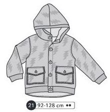Sweat à capuche, poignets et ceinture en bord côte. Poches à rabat plaquées devant. Boutonné devant jusqu’à la capuche