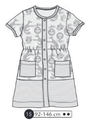 Robe manches courtes et élastiquée à la taille. Poches plaquées, boutonnée devant