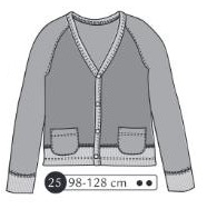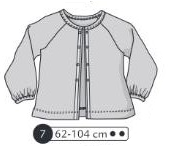 Gilet manches longues raglans froncées en bas. Boutonnée devant avec pressions