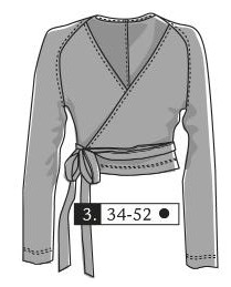 Cache cœur, fausses manches raglans. Ces dernières ne forment qu’une pièce avec le dos (dos en 2 pièces) et couture raglan devant. Lien à nouer pour fermer