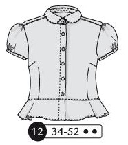 Chemisier manches courtes ballon, pinces et basque, empiècement dos. Col arrondi avec pied de col.