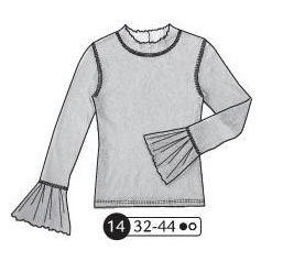 Pull manches longues et col bénitier montant. Devant et dos en 2 pièces
