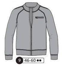 Sweat à col montant. Bandes appliquées sur le dessus des manches, poches zippées devant, poignet et ceinture en bord côte. Fermeture éclaire devant