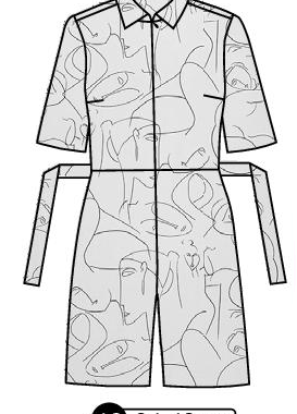 Combishort à manches courtes et capuche, pinces sur l’arrière de la tête. Patte de boutonnage devant avec pressions et pressions à l’entrejambe. S’enfile par la tête.