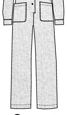 Combinaison en lin à manches longues munies de fente et bouton aux poignets. Pinces poitrine, pinces dos haut et pantalon. Poches plaquées devant poitrine et hanches et au dos. Empiècement dos, ceinture à nouer, patte de boutonnage devant.