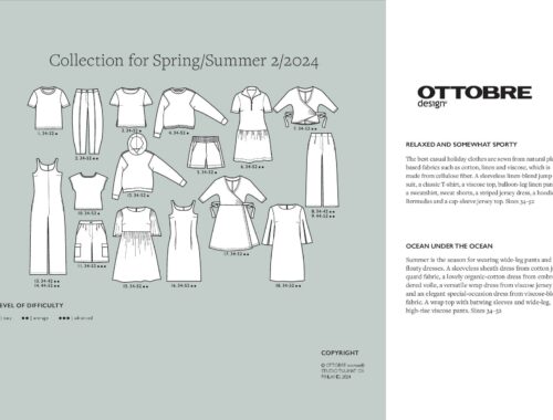 Sweat plus ou moins court selon la version, avec un élastique à la taille ou bien ajout d’un bande de ceinture pour un peu plus de longueur. Emmanchure carrée pour un effet différent.