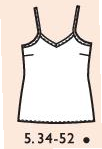 Débardeur à fines bretelles avec le pan large devant pour avoir un peu d’amplitude en haut, dos élastiqué en haut pour un bon maintien en place