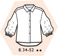 Chemisier avec manches longues amples comportant et petits plis, élastiquées au poignets. Empiècement dos revenant sur les épaules, petits plis rapprochés et piquées au dos, col avec pied de col, patte de boutonnage devant