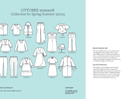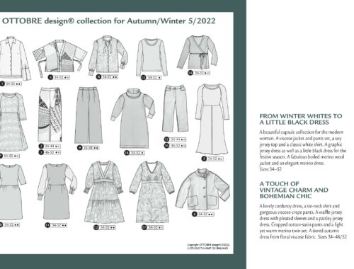 Robe courte manches 3/4 avec petite fente en bas. Pinces sous poitrine, fronces aux hanches de la jupe, poches dans la couture de côté aux hanches. Fermeture invisible au dos et petites pinces à l’encolure dos