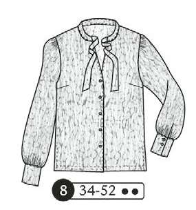 Chemisier manches longues froncées à l’emmanchure mais aussi aux poignets avec boutons aux bracelets de poignets. Pinces poitrine et épaules dos. Col mao avec lien pour nouer, boutonnage devant.