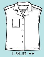 Chemisier sans manches avec empiècement et fronces au dos. Poche plaquée et patte de boutonnage devant.