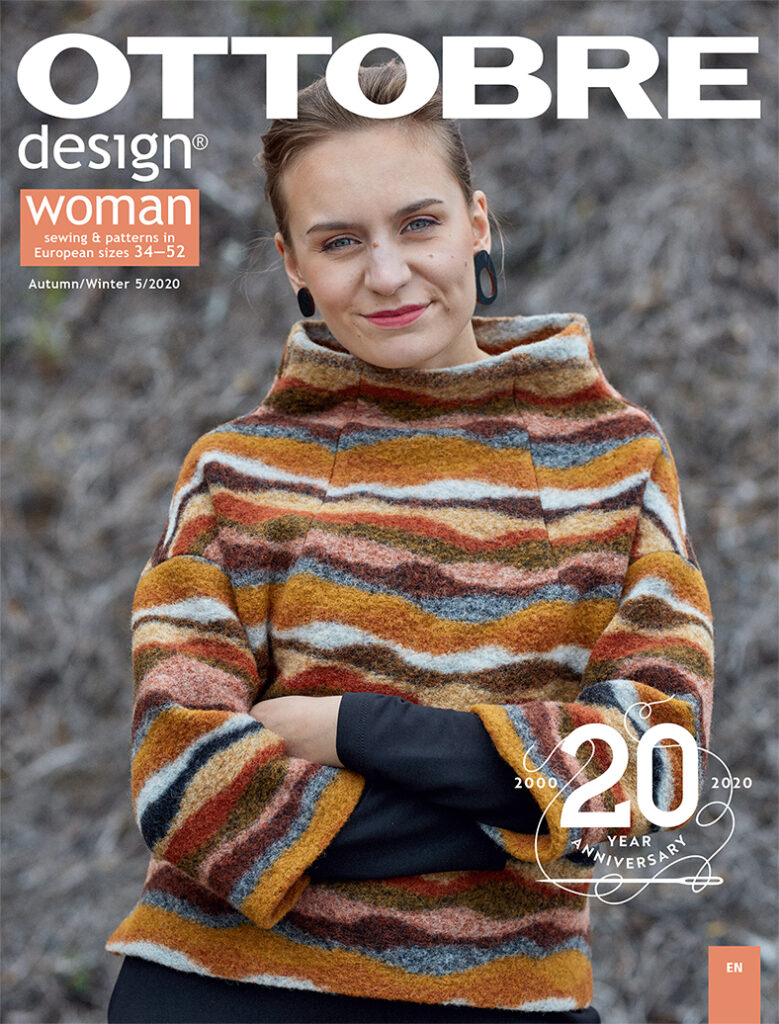 Pull manches 3/4 avec emmanchures descendue, col montant avec pinces devant. Fentes en bas des côtés