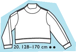 Pull court avec encolure montante, manches avec une bande sur le dessus, poignet et ceinture dans la même matière.