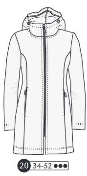 Veste softshell longue avec découpe devant et dos, capuche et poches zippées dans la couture. Fermeture éclaire devant jusqu’à la capuche