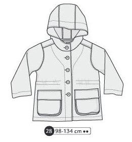 Manteau mi-saison en coton doublé avec capuche élastiquée sur le haut pour resserrer, revers aux manches , empiècement devant et dos. Fronces devant et dos, poches plaquées devant et fermeture éclaire devant jusqu’à la capuche