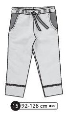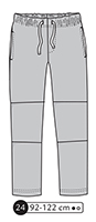 Pantalon de jogging avec poches sur les côtés dans la couture, empiècement genoux. Taille élastiquée et lien pour serrer, fausse braguette. Poches au dos
