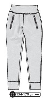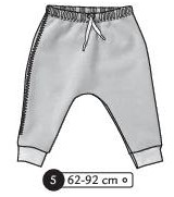 Pantalon de jogging, fausse braguette, empiècement aux genoux, poches aux hanches dans les coutures et taille élastiquée. Bord côte aux chevilles