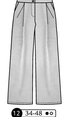 Pantalon ou pantacourt large à plis devant et pinces au dos. Poches italiennes, braguette et boutons à la large ceinture