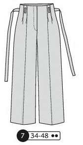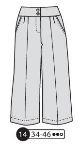 Pantacourt large. Pinces devant et dos. Fermeture invisible sur le côté et agrafe. Ceinture supplémentaire avec boutons