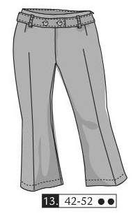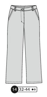 Pantalon en maille, coupe large avec pli devant sur les jambes. Pinces devant et dos, poches aux hanches, braguette et bouton à la ceinture.