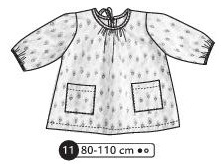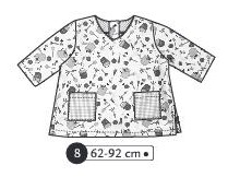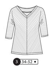 Tunique manches 3/4 à revers, empiècement et patte de boutonnage devant, fronces en bas de l’empiècement devant. Pinces aux épaules dos et poches dans les coutures de côté
