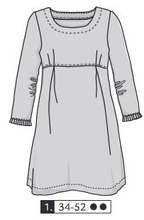 Robe en coton manches 3/4, froncée devant et dos. Fermeture invisible au dos