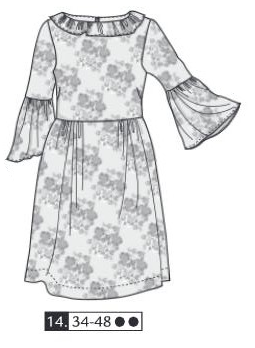 Robe courte en viscose, manches 3/4, volants aux manches et à l’encolure. Fermeture invisible dans le dos