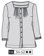 Tunique fluide manches 3/4 élastiquées en bas. Pinces poitrine, fronces à l’encolure devant et fente avec bouton au dos. Ceinture avec liens à nouer en plus