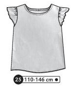Tee shirt manches courtes froncés et volantées. Col rond devant et V dans le dos.