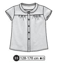 Chemisier manches courtes, petit col rond. Fronces devant et dos, empiècement devant et dos et boutonnage devant