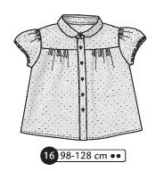 Chemisier manches courtes ballon froncées, petit col arrondi avec pied de col, fronces devant et dos sous les empiècements, boutonnage devant