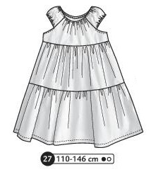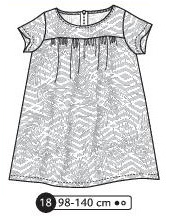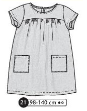 Robe courte à manches courtes, fronces sous les empiècements dos et devant. Poches plaquées devant, fente, brides et boutons au dos