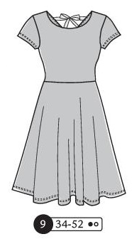 Robe courte à manches courtes, fronces devant et dos sous les empiècements. Fermeture invisible au dos