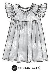 Robe courte avec manches courtes raglans et volants, encolure froncée, fronces devant et dos