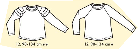 Tee shirt manches longues raglan avec des volants sur le haut de la manche selon la version choisie