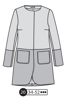 Veste ou manteau mi saison avec poignets et col en bord côte. Découpe manches, devant et dos. Poches zippées devant et poches plaquées à rabat devant. Lien à la ceinture pour resserrer le bas de la veste. Fermeture devant