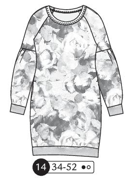 Robe courte sweat avec manches longues raglans. Découpe et fronces des manches, poches aux hanches. Poignets et bande ourlet en bord côte. Pinces aux épaules