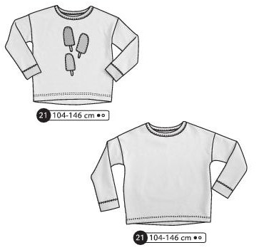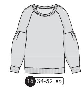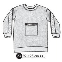 Sweat manches longues avec emmanchures descendues et poignets. Avec ou sans appliqué devant et avec ou sans découpes dos selon options choisies