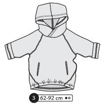 Sweat à capuche croisée, manches raglans, bas du dos revenant devant. Poches devant