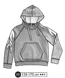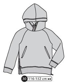 Sweat à manches raglans et capuche. Poches kangourou plaquée devant. Poignets et ceinture en bord côte