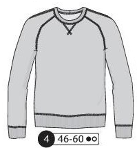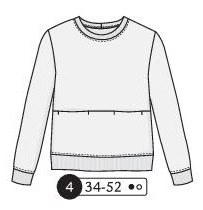 Sweat avec découpe des manches raglans, découpes devant et poche invisible prise dans une découpe. Col, poignets et ceinture en bord côte