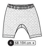 Pantacourt avec ouverture arrondie sur les côtés extérieurs du bas des jambes, avec ou sans volant. Taille élastiquée